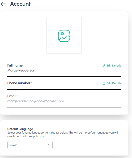 At the bottom of the page, you will find a section called "Default Language". Here you can change the language of the platform. At this time, OnShelf is available in both English and Spanish. A pop-up at the top of the screen will confirm any changes made.