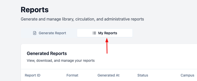 The My Reports tab keeps a history of reports you've previously generated, so you can always go back and re-download or review them.